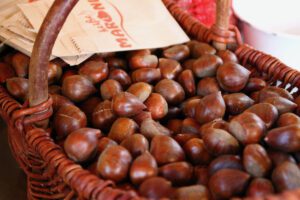 Der Duft von Winter und Gemütlichkeit: Unsere frisch gerösteten Maroni sind der unwiderstehliche Klassiker, der auf keinem Event fehlen darf. Maroni sind nicht nur ein Snack, sondern ein altes Kulturgut, das besonders auf Weihnachtsmärkten und winterlichen Festen für authentische Stimmung sorgt. Wir bieten Ihnen Maroni bester Qualität, auf Wunsch auch zertifiziert nach EU Bio-Standard, immer heiß und serviert in der praktischen Doppeltüte für unbeschwerten Genuss.