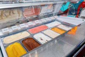 Wir bieten eine vielfältige Auswahl an Milchspeiseeis und veganen Fruchtsorbets an: